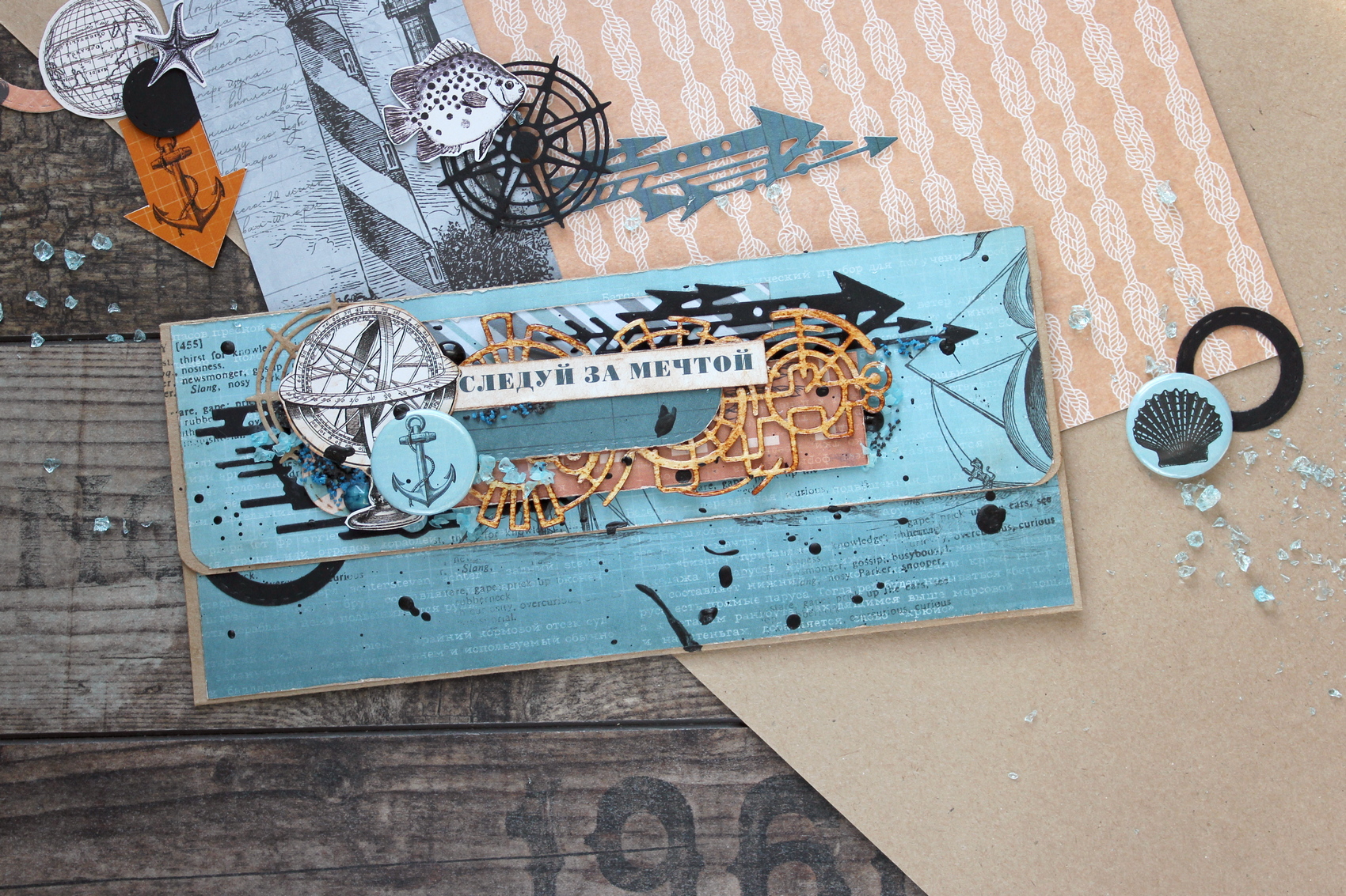 Вот и в этот раз, у меня остались остатки/обрезки от прошлых проектов - миника и фоторамки, коллекция "Мой капитан" . На что их изводить? Конечно же на конверты.